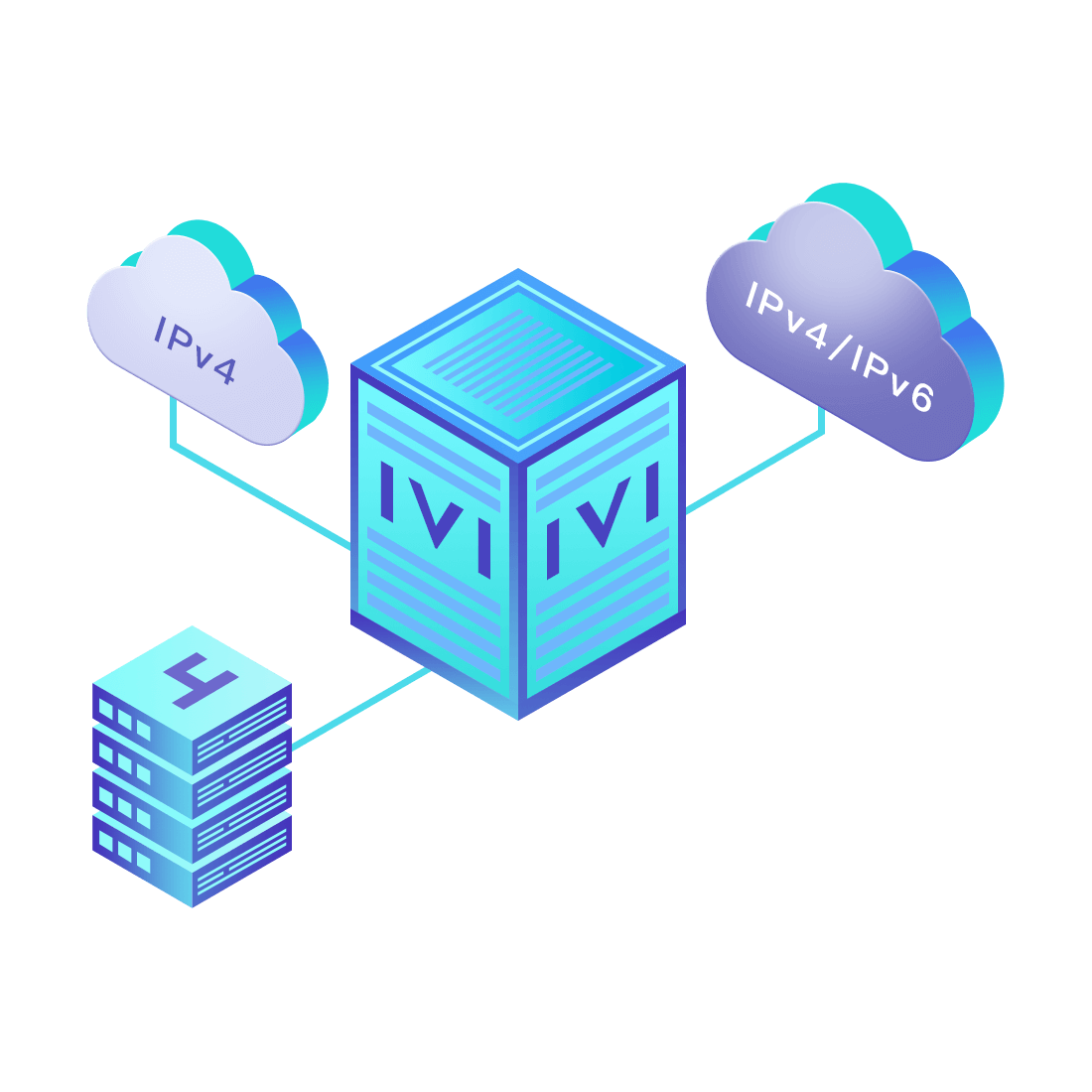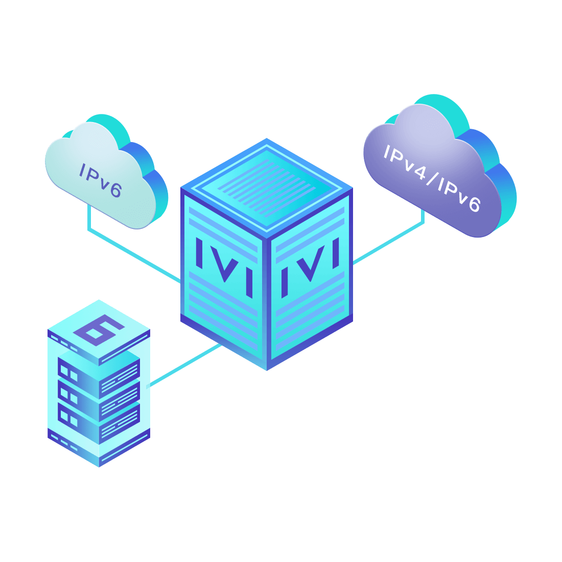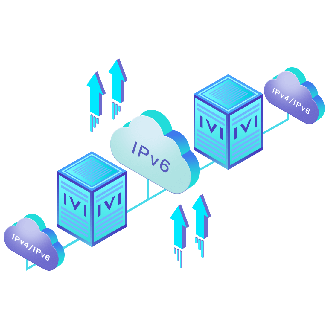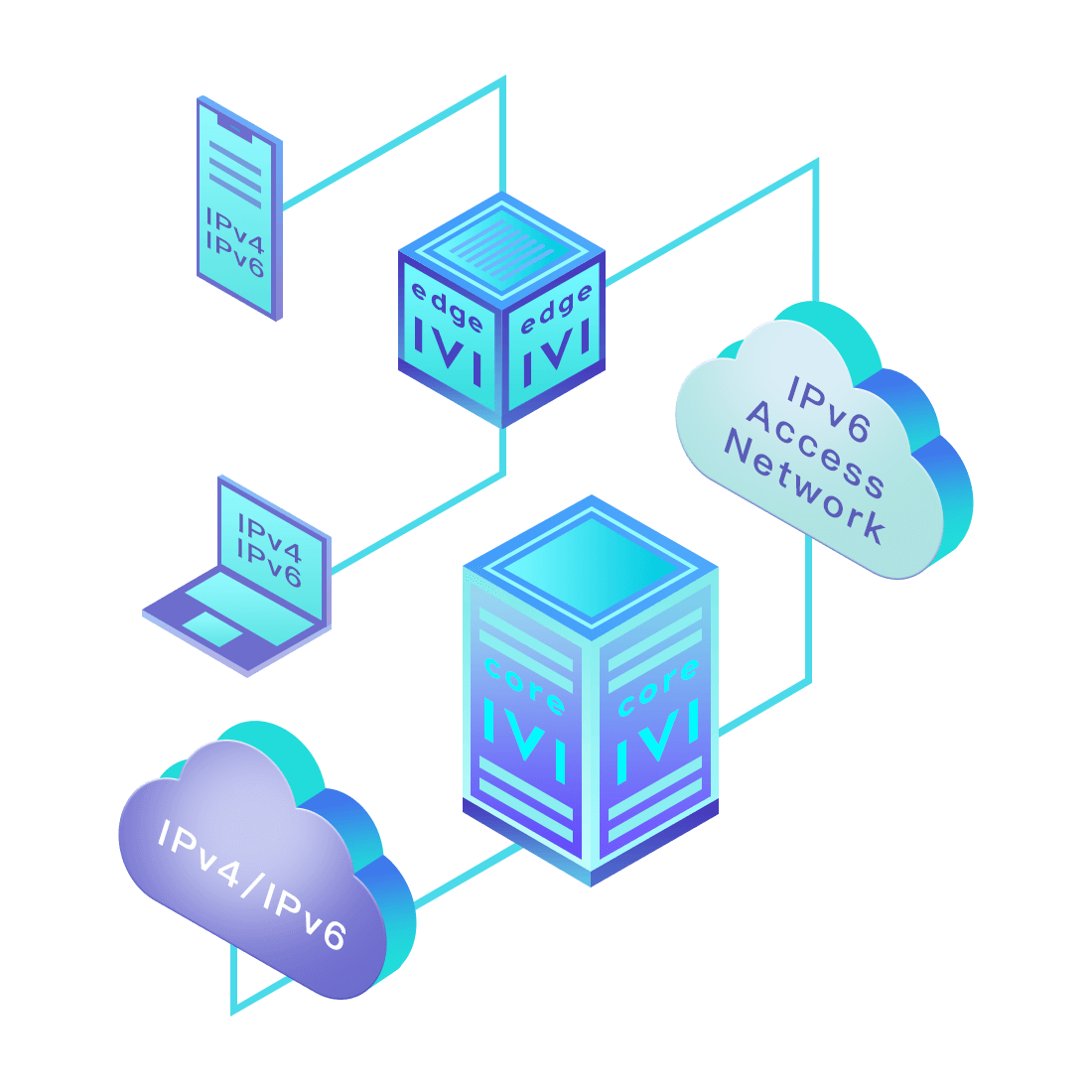 對(duì)正在進(jìn)行IPv6整體升級(jí)規(guī)劃的運(yùn)營(yíng)商,應(yīng)用IPv6升級(jí)方案2.5,通過(guò)IVI無(wú)狀態(tài)翻譯技術(shù)和純IPv6接入網(wǎng)絡(luò),為雙??蛻舳撕碗p棧服務(wù)器提供連通服務(wù)。